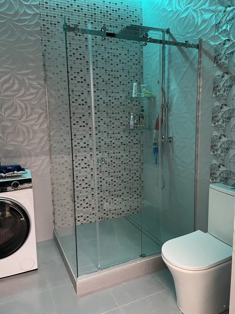 В ассортименте представлены два типа душевых кабин из стекла на заказ: раздвижные и распашные. Раздвижные конструкции удобны для малогабаритных ванных, могут устанавливаться в алюминиевом профиле или без каркаса – только на верхней рельсе. Распашные модели требуют больше места, обеспечивают лёгкое и бесшумное открывание. Каждое решение подбирается с учётом планировки и позволяет максимально эффективно использовать пространство ванной комнаты.